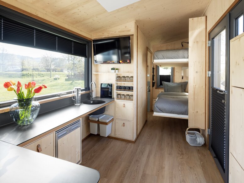 Christian Bock: With our tiny houses, the focus is clearly on the quality of living. The properties of the materials plays a big role for us. We mainly use natural as well as sustainable materials for our mini-homes, including wood or sheep’s wool. We also make sure to work as sustainably and ecologically as possible. Some of our tiny houses are also mobile and transportable to a limited extent. But they cannot be compared with motor-homes. A different living climate prevails in a tiny house. Nevertheless, you only have a limited amount of space available, which must be used in the best possible way.