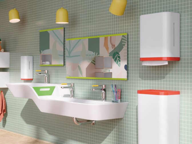 HEWI offers customised solutions for kindergartens and schools that combine design, functionality and durability. From the door to the sanitary areas, robust concepts are created that can withstand heavy use. HEWI can be used to build barrier-free sanitary facilities for schools and daycare centres that meet the respective requirements.
