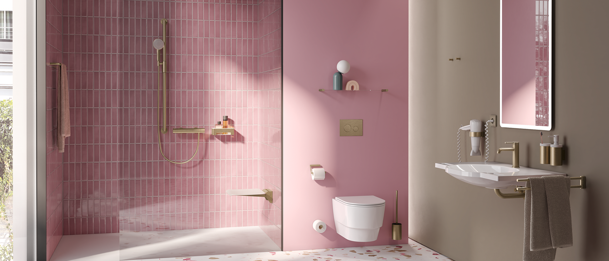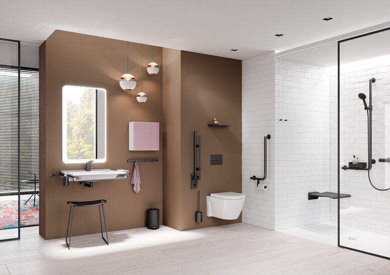 • Visual orientation: Use high-contrast colours in the sanitary equipment that promote intuitive use and self-determined use: